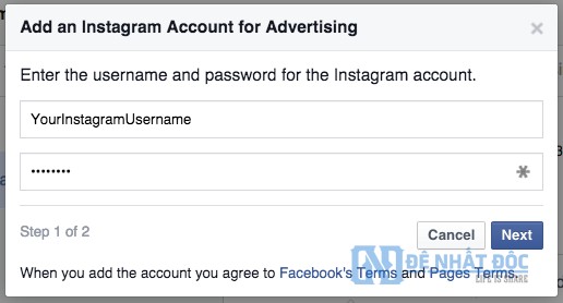 – Điền thông tin đăng nhập Instagram bao gồm Username và Password vào, bấm Next.- Kiểm tra các ô trống cạnh mỗi tài khoản quảng cáo và cấp quyền truy nhập cho tài khoản Instagram của bạn. Hoặc bạn có thể click vào “Assign Ad Accounts” và tích hợp các tài khoản quảng cáo của bạn sau.